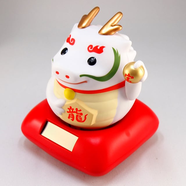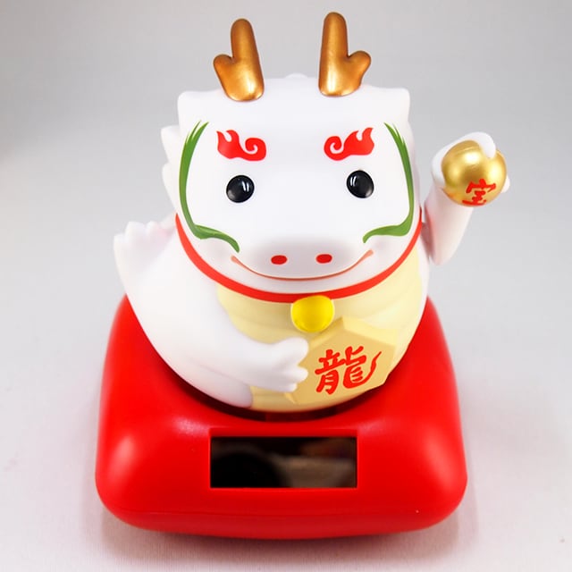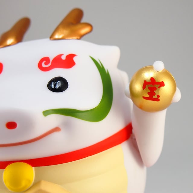 ぽっちゃり愛らしい龍が、宝珠をにぎった手で福を招きながら、