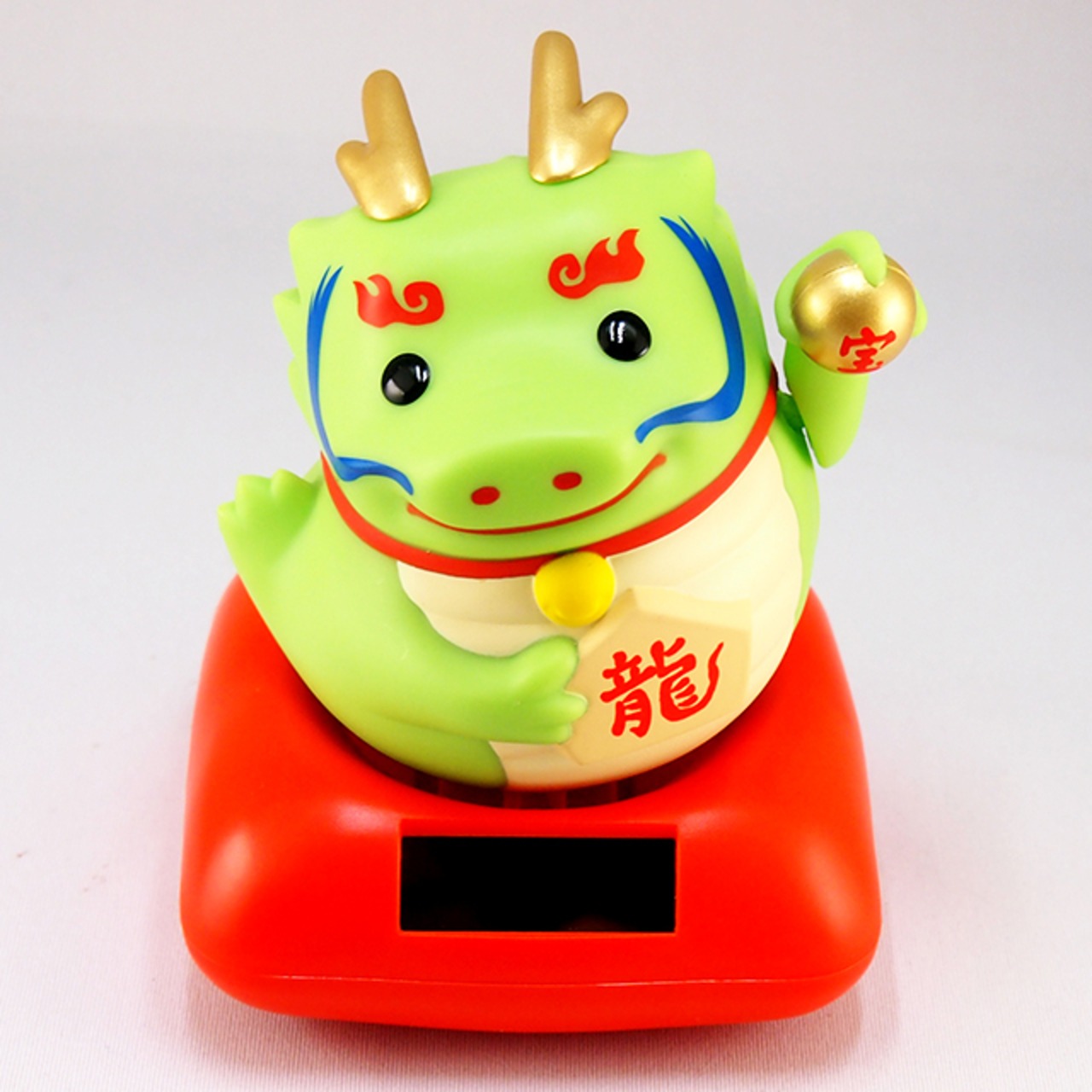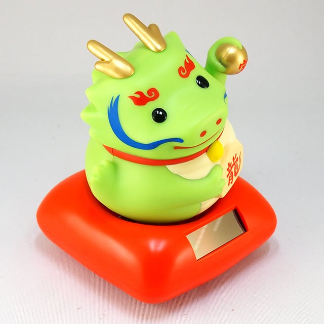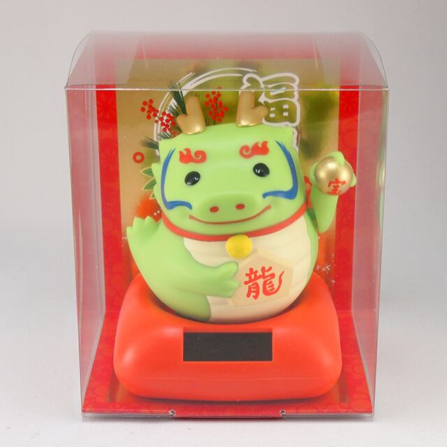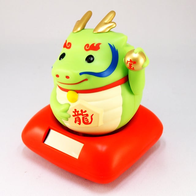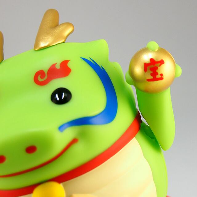 ぽっちゃり愛らしい龍が、宝珠をにぎった手で福を招きながら、
